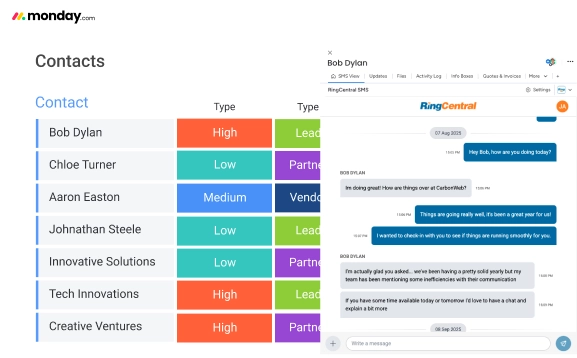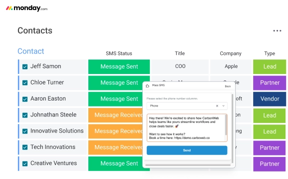 Sales, marketing, and support teams who rely on SMS to reach contacts quickly and want those conversations tracked inside monday.com.